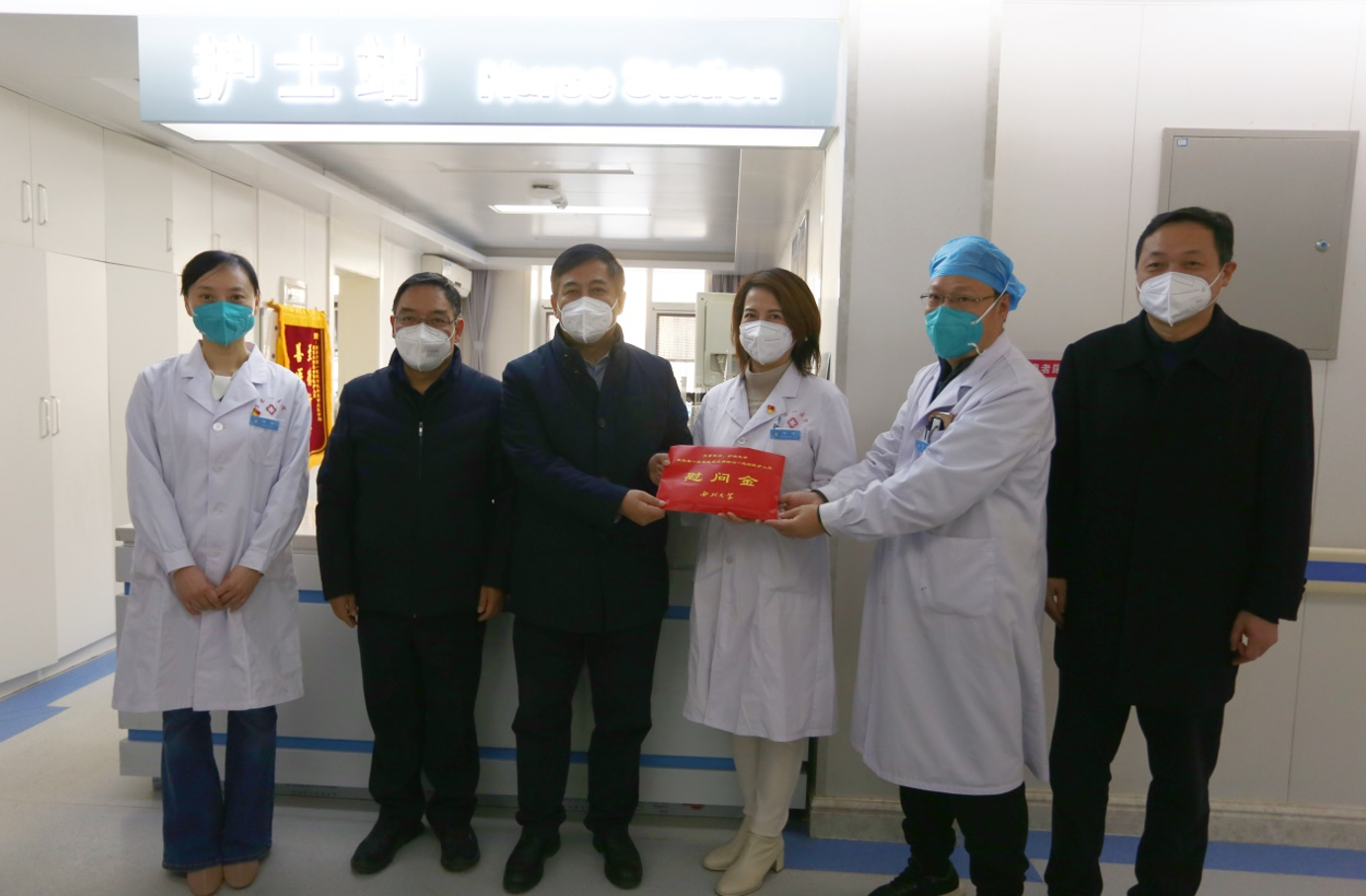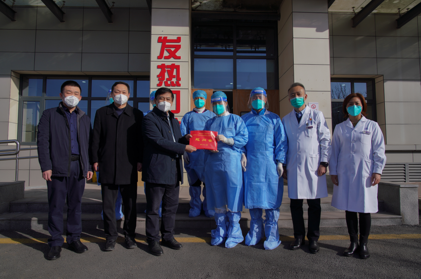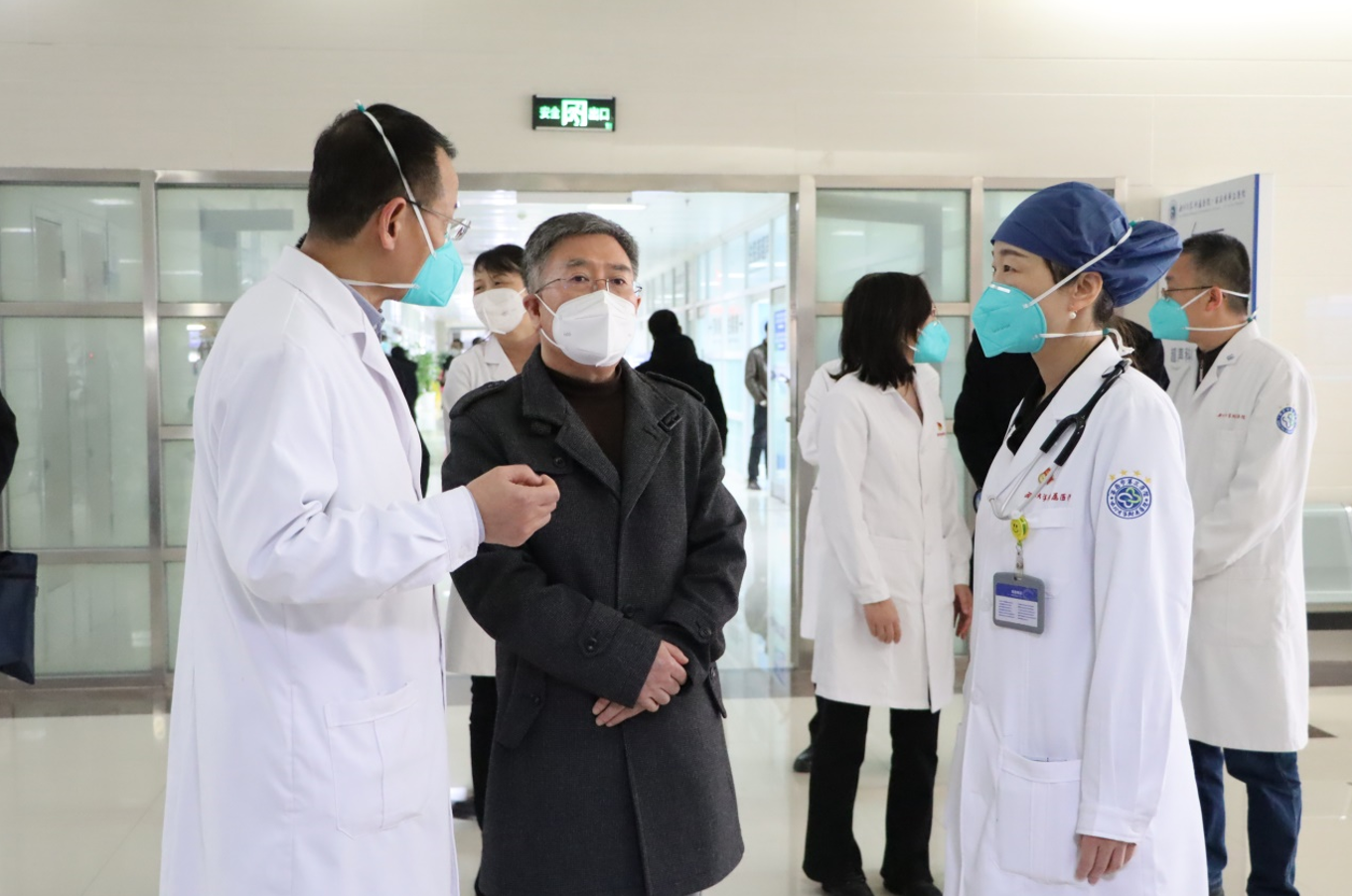 1月10日,郭立宏一行来到附属医院和附属西安国际医学中心医院的急诊、重症监护室、呼吸与危重症医学科等临床一线,详细询问了近期急诊和发热门诊接诊、医疗资源统筹、危重病人救治、急用药物和设备供应、医务人员健康等情况。他代表学校向奋战在诊疗救治一线的医务工作者表示衷心感谢和诚挚慰问,叮嘱大家要加强自我防护,表示学校作为各附属医院的坚强后盾,会全力从工作、生活及关怀服务等方面提供最大支持和帮助,并提前致以新春问候和美好祝福。