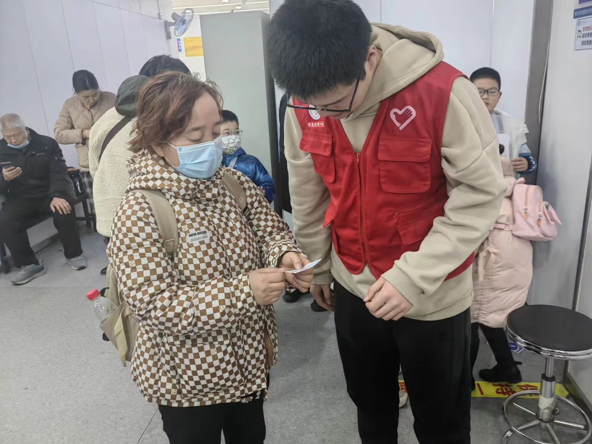 志愿者孙思瑞同学说:“我们志愿者的主要职责是为患者提供看病流程的引导,偶尔会解答他们的疑问,工作地点在门诊导医台,自助机和诊室门口旁。这次志愿活动,我从刚开始磕磕巴巴,到主动询问患者是否需要帮助。我深刻地感受到了人们面对疾病的痛苦与坚韧。在与病人的互动中,我也见证了许多温暖人心的瞬间。”