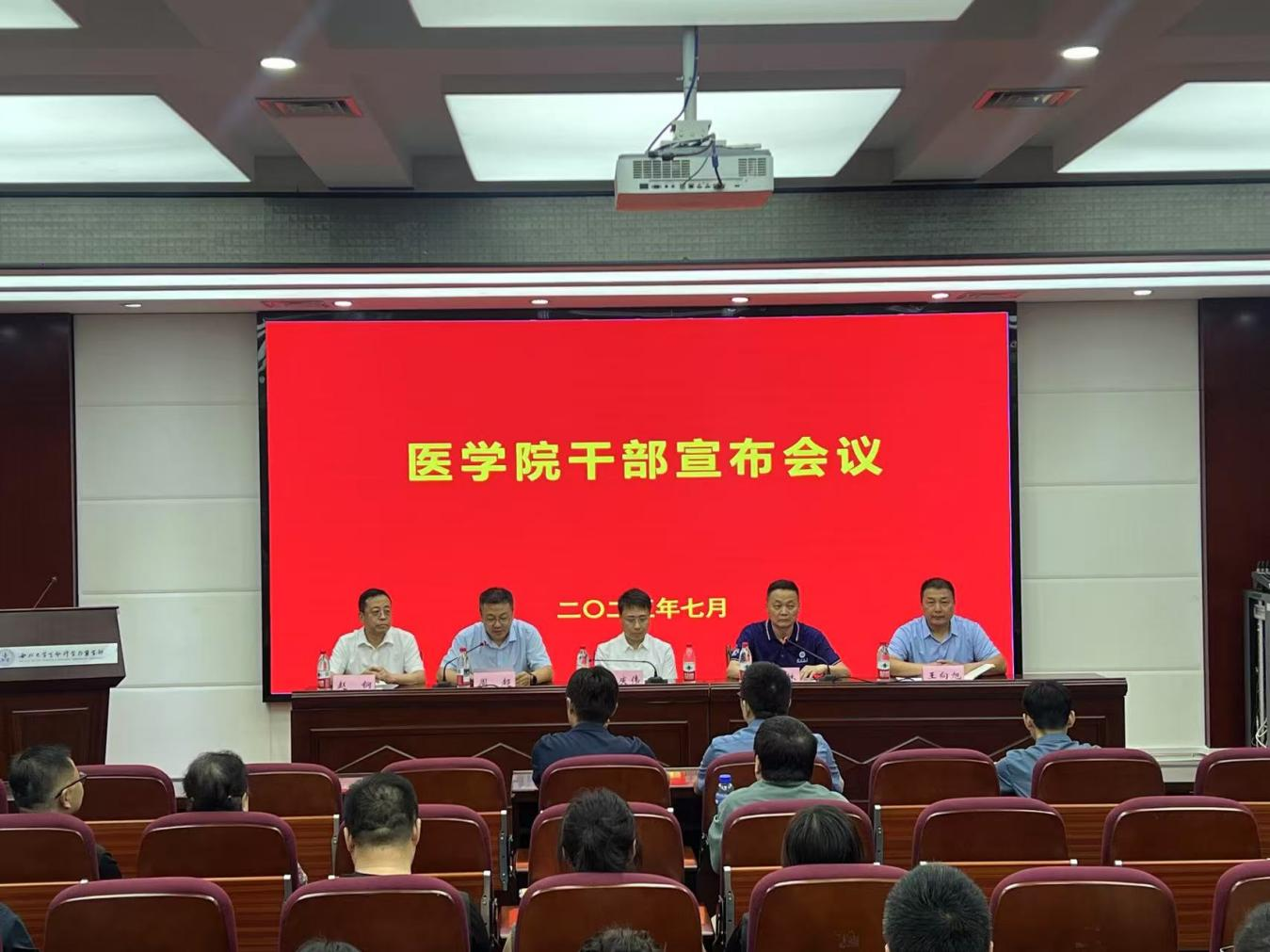 7月8日下午,YABO鸭脖官网干部宣布会议在太白校区生命科学与医学部博望报告厅举行。校长孙庆伟、校党委组织部常务副部长周超出席会议。学院全体教职工参会,会议由校党委常委、副校长陈富林主持。
