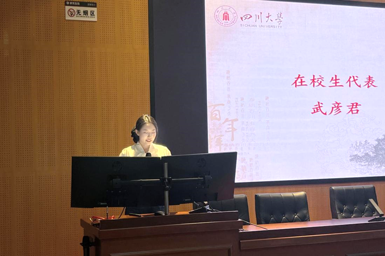 新生王钦作为新生代表讲述了在专业和研究成长中的所思所感,其中在研究生身份转变上,要锲而不舍,做自强不息的奋进者;要求知若渴,做勇于创新的探索者;要笃行致远,做求真务实的践行者。在生活上,注重劳逸结合。学习之余,亲身感受成都和川大的市井生活和人文魅力。