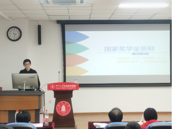 答辩开始,来自3个年级的同学依次进行答辩。同学们从学业情况、科研创新、学生工作、社会责任等方面进行汇报,展示了极高的学术造诣和优秀的综合素质。现场评委认真聆听,审核了申请学生的材料后根据每位候选人现场表现和实际能力进行打分评定。