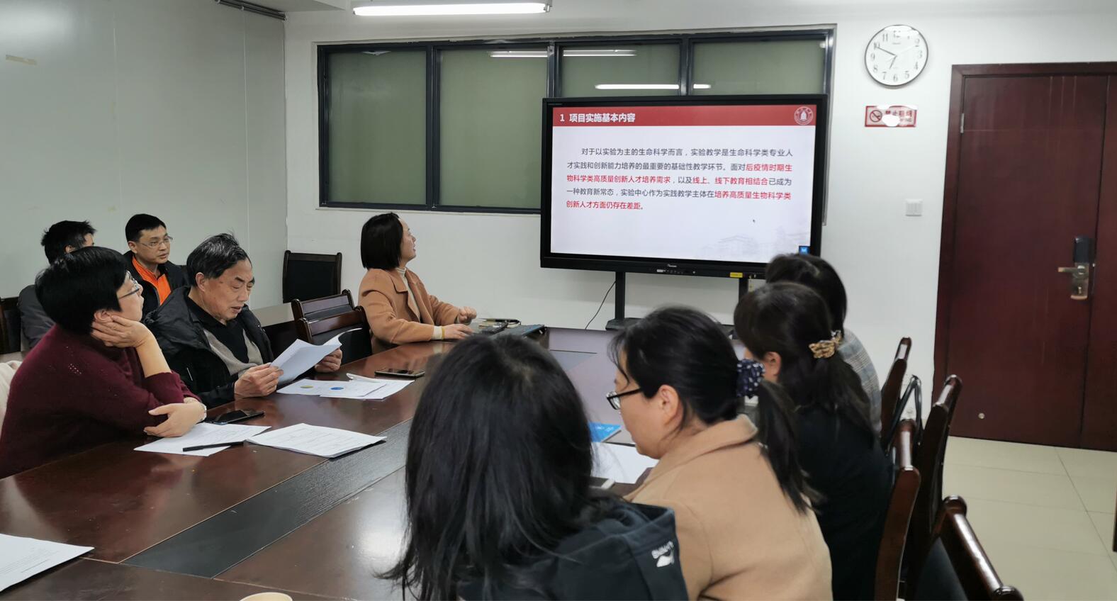 林宏辉教授的项目《后疫情时代生物科学类贯通式拔尖人才培养实验教学体系建设》由王甜老师代为汇报。此项目已经取得了一些阶段性的成果,例如团队教师积极进行《生命奥秘探索》的一流课程建设;参与编写了《高校生物学专业类实验教学建议性规范》和《微生物学实验指导》;在实验课程汇总推广课程思政理念的成果并完成相关教改论文的投稿;以植物遗传转化系列实验建设为例介绍了贯穿式创新创业型本科人才培养模式;团队教师指导大学生创新创业训练计划;实验教学考核与评价体系的建设情况;虚拟仿真实验教学资源共享教学平台升级改造情况等。最后,王老师汇报了此项目的下阶段计划和预期结果。