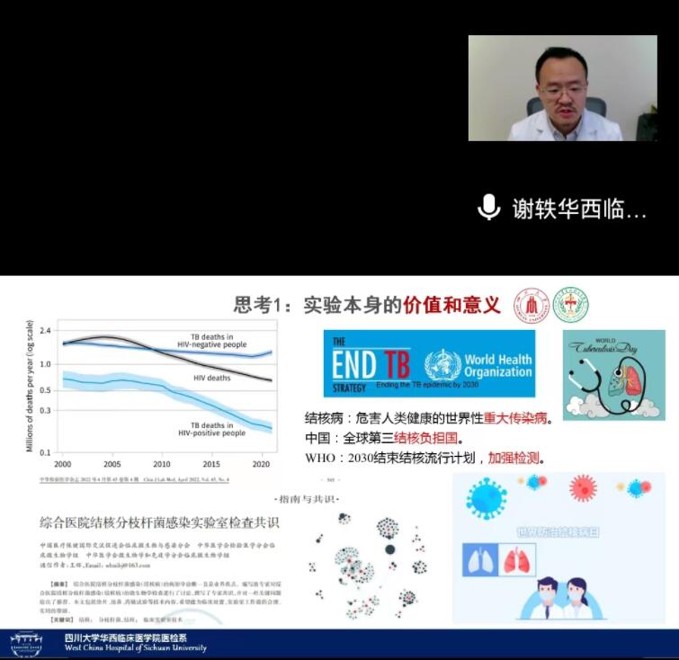 临床医学院谢轶老师从团队建设的国家级一流课程-结核分枝杆菌虚拟仿真实验建设和应用出发,分享了如何建设一门有意义的虚拟仿真实验。首先要思考实验本身的价值和意义,强调虚拟仿真实验一定要能实不虚,接着详细地介绍了结核检测虚拟教学的总体设计思路,强调建设虚拟仿真实验的实用性、感受性和探索性。最后谢老师分享了该实验的教学方案和虚拟实验步骤,详细展示了如何建设一门虚拟仿真实验的方法。