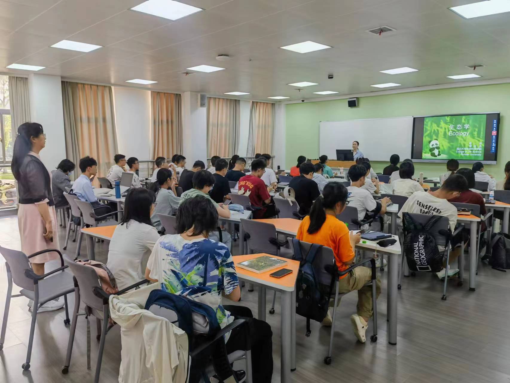 教室均为多功能教室,宽敞明亮。教室扩音设备好,坐在后排的学生也能听清楚教学内容,整体教学效果较好。