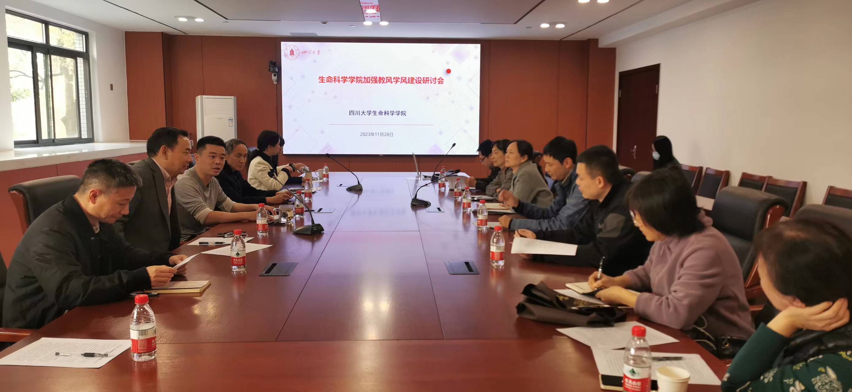 2023年11月28日下午,3003新葡平台加强教风学风建设研讨会在3003新葡平台生科楼B205会议室顺利召开,教学副院长张大伟教授主持本次会议,系主任、督导组老师、基层教研组织负责人和辅导员共计15名老师参会。
