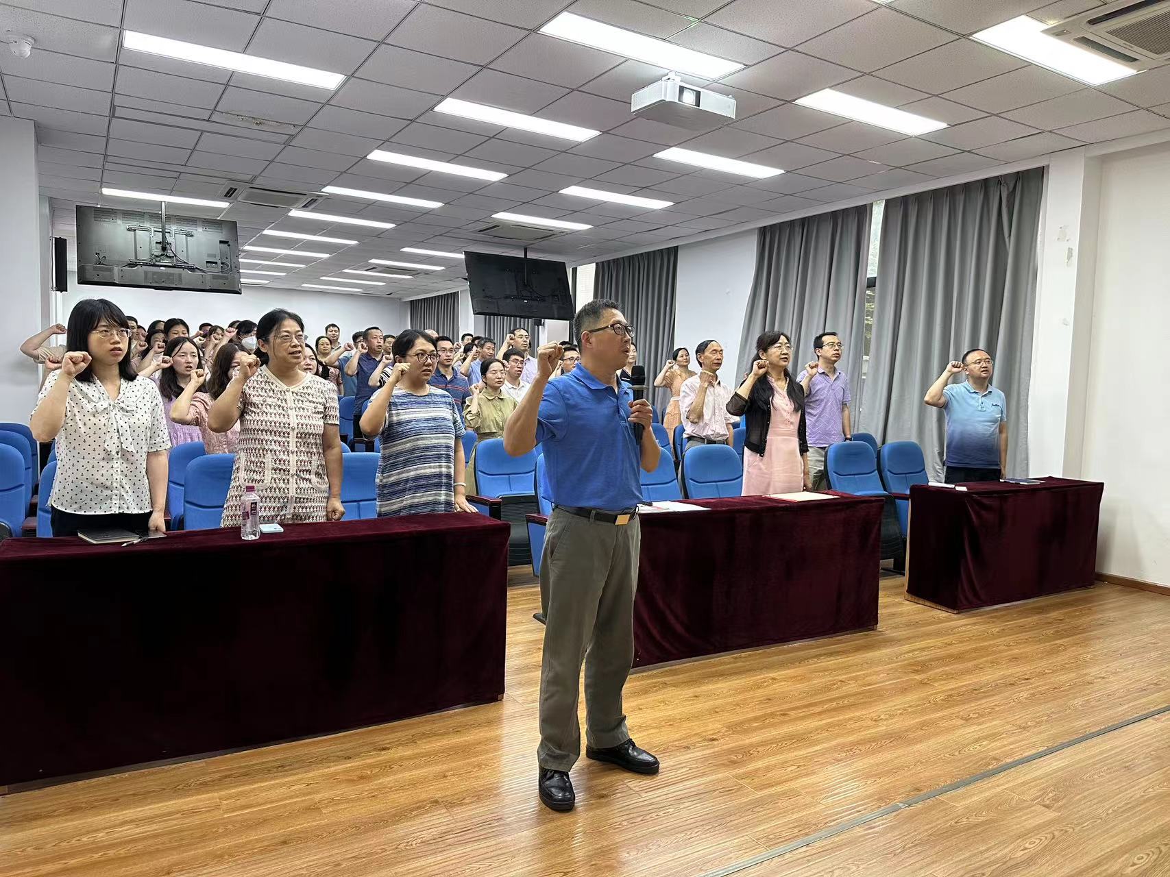 表彰结束之后,学院党委书记林宏辉同志结合主题教育“学思想、强党性、重实践、建新功”的总要求,对全体党员提出了“坚定理想信念、争做优秀党员”的目标,并带领全体党员一起重温入党誓词,希望学院教职工党员铭记入党誓词、勇扛历史使命,向心凝聚、向难攻坚,干在实处,用实干实绩书写奋发有为的人生篇章。