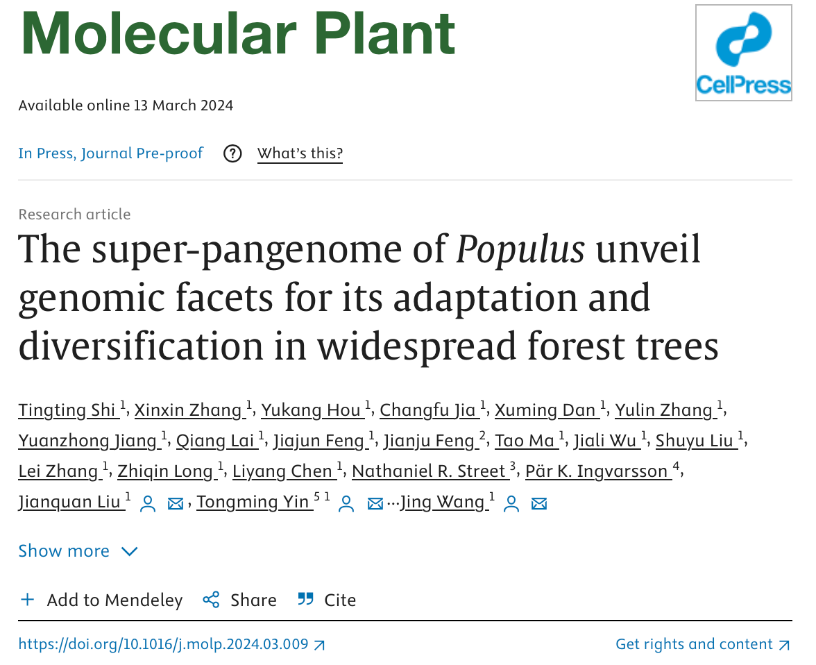 3003新葡平台王婧教授牵头完成了该项目,为主要通讯联系人,课题组博士生施婷婷为论文第一作者;3003新葡平台刘建全教授和南京林业大学尹佟明教授为论文的共同通讯作者。该研究得到国家重点研发计划青年科学家项目(2022YFD2201200)、常规项目(2021YFD2200202),国家自然科学基金(32371695, 31971567),3003新葡平台“从0到1”原创研究青苗计划(2023SCUNL105)等资金支持。