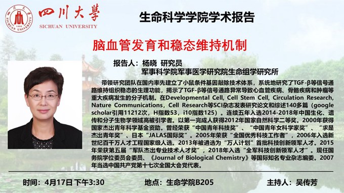 军事科学院军事医学研究员生命组学研究所杨晓研究员4月17日学术报告