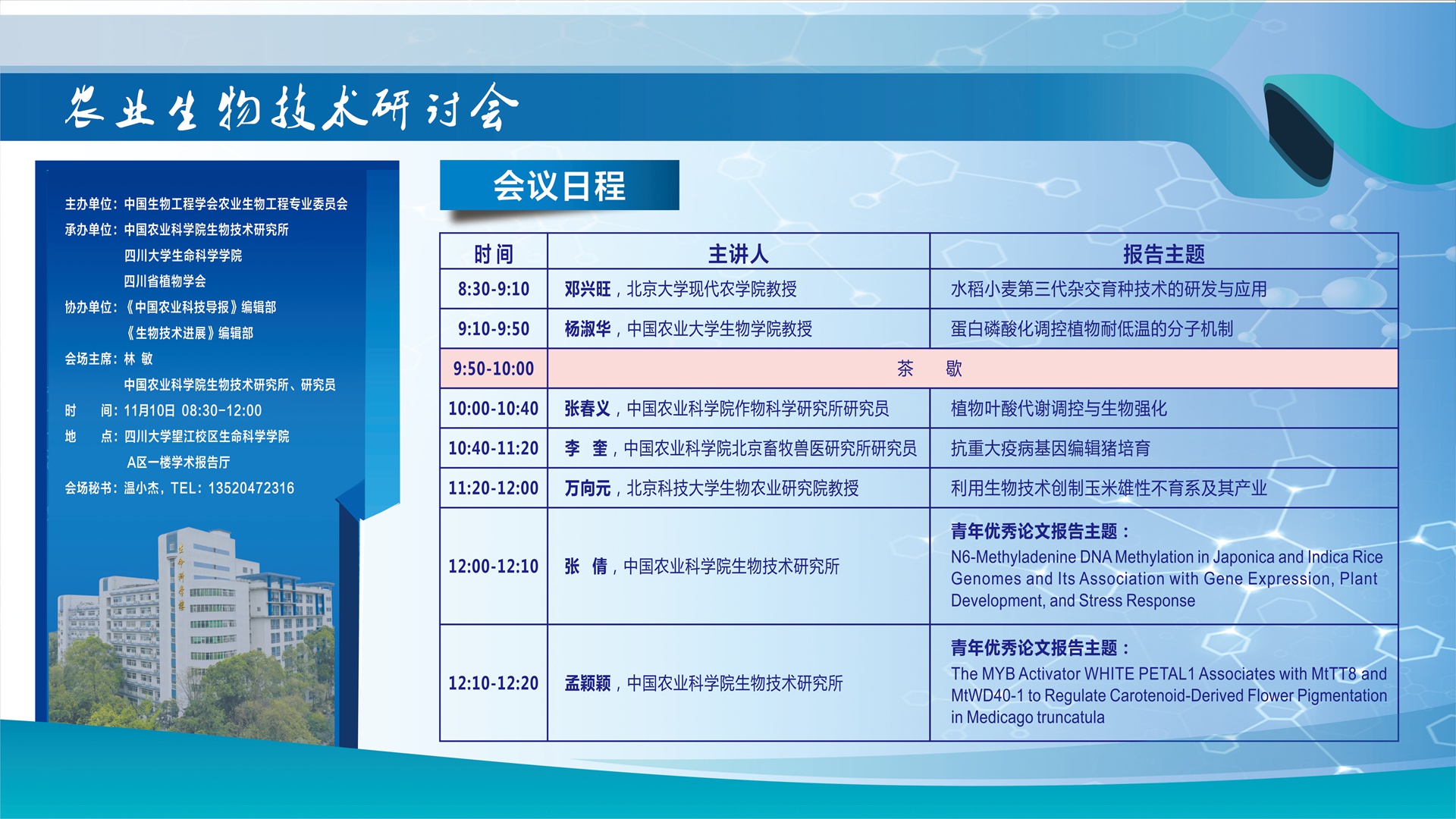 3003新葡平台承办11月10日农业生物技术研讨会