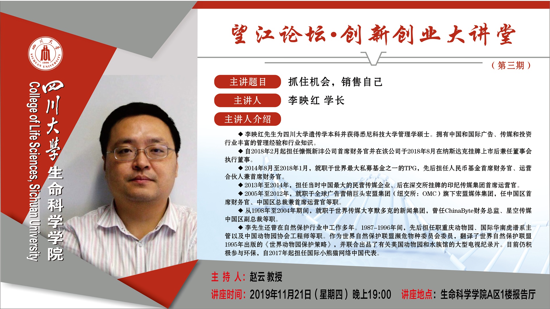 杰出校友李映红11月21日创新创业大讲堂