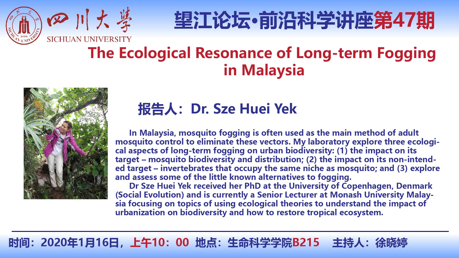 Dr.Sze Huei Yek1月16日学术报告