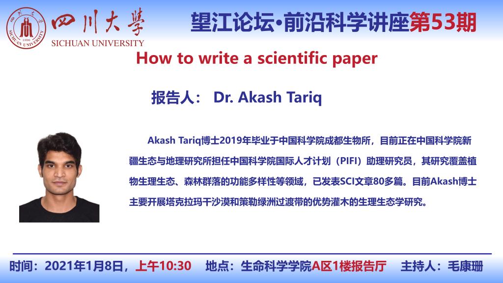 中科院新疆生态与地理研究所助理研究员Dr.Akash Tarip 1月8日学术报告