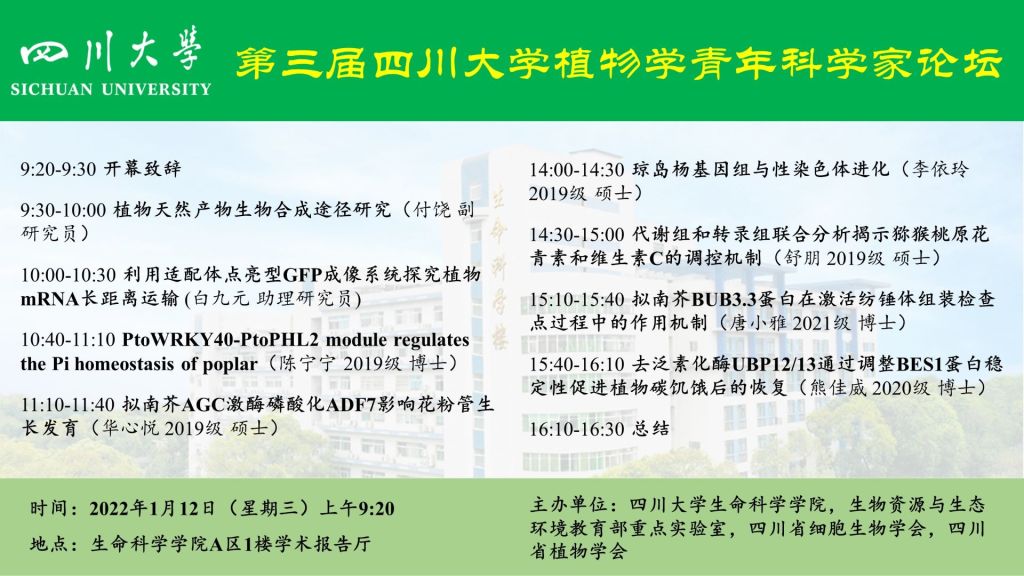 第三届3003新葡平台植物学青年科学家论坛1月12日举行