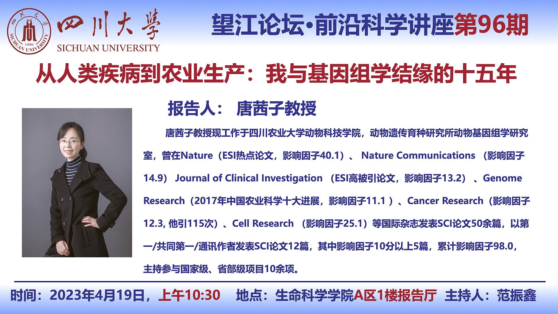 望江论坛-前沿科学讲座(第96期):唐茜子4月19日学术报告
