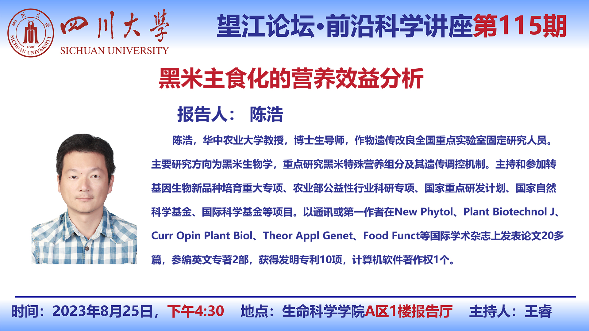望江论坛-前沿科学讲座(第115期):陈浩教授8月25日学术报告