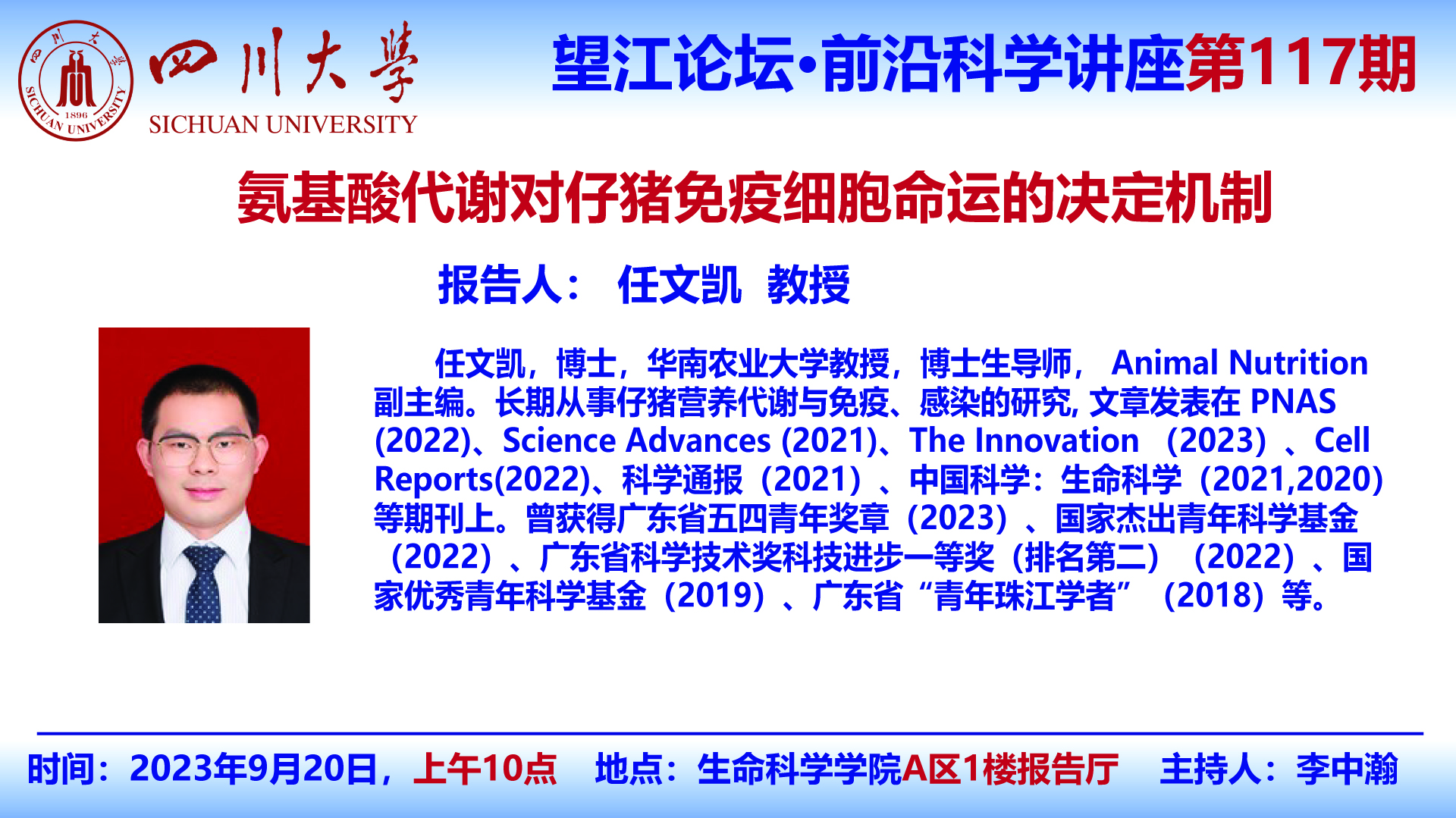 望江论坛-前沿科学讲座(第117期):任文凯教授9月20日学术报告