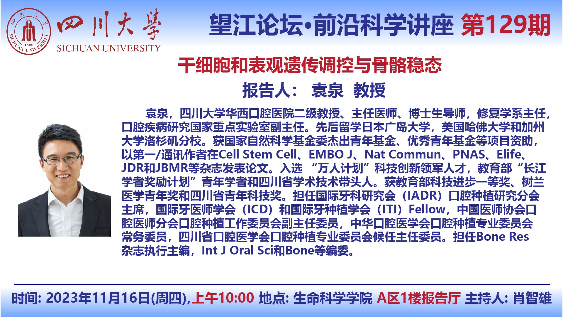 望江论坛-前沿科学讲座(第129期):袁泉教授11月16日学术报告