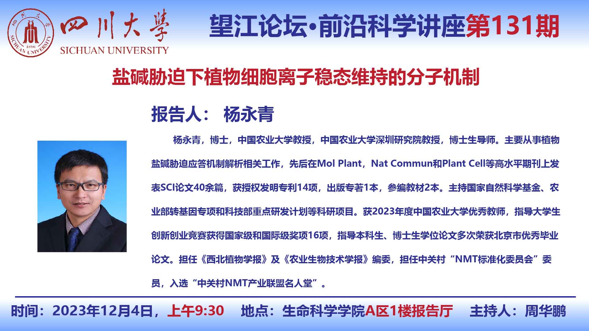 望江论坛-前沿科学讲座第(131期):杨永青教授12月4日学术讲座