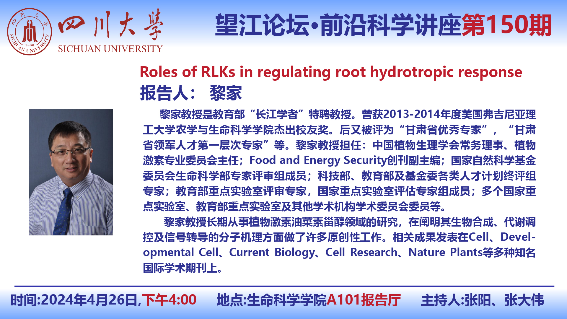 望江论坛-前沿科学讲座(第150期):黎家教授4月26日学术讲座