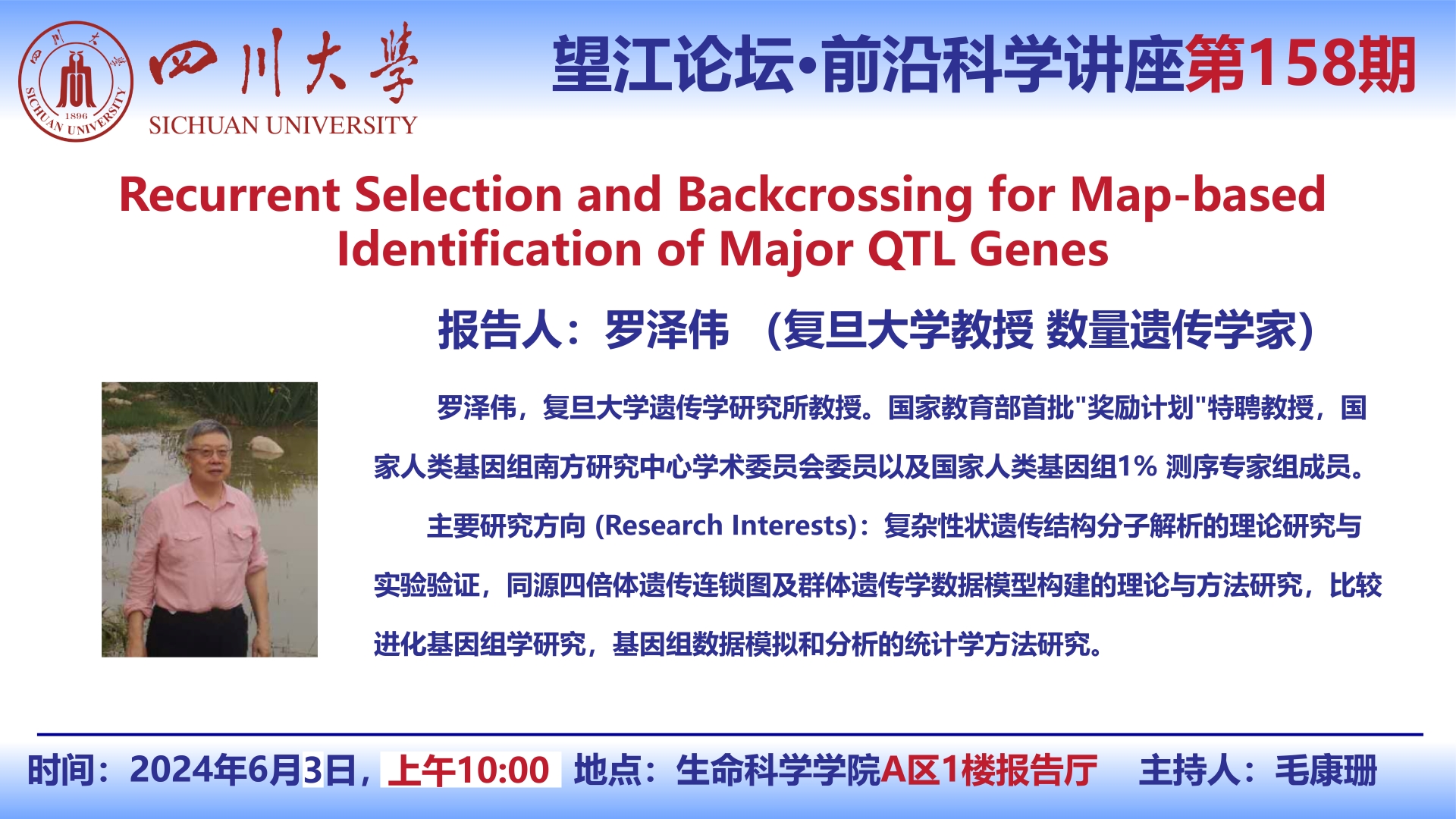望江论坛-前沿科学讲座(第158期):罗泽伟教授6月3日学术讲座