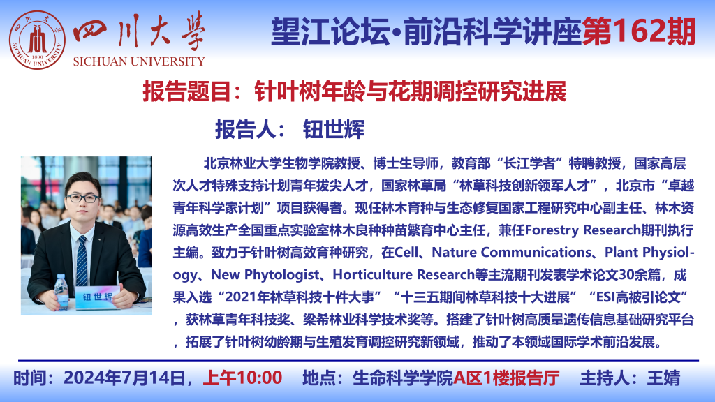 望江论坛-前沿科学讲座(第162期):钮世辉教授7月14日学术讲座