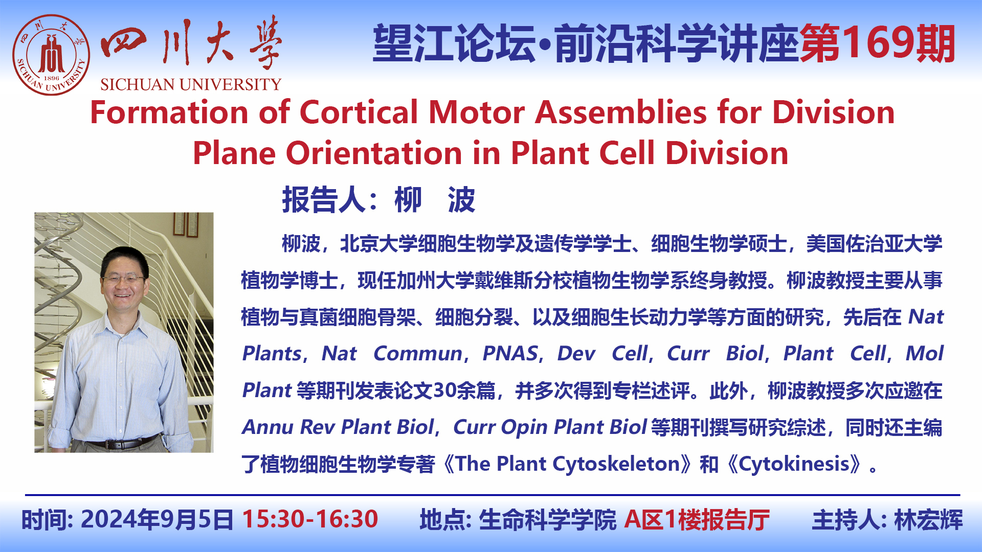 望江论坛-前沿科学讲座(第169期):柳波教授9月5日学术讲座