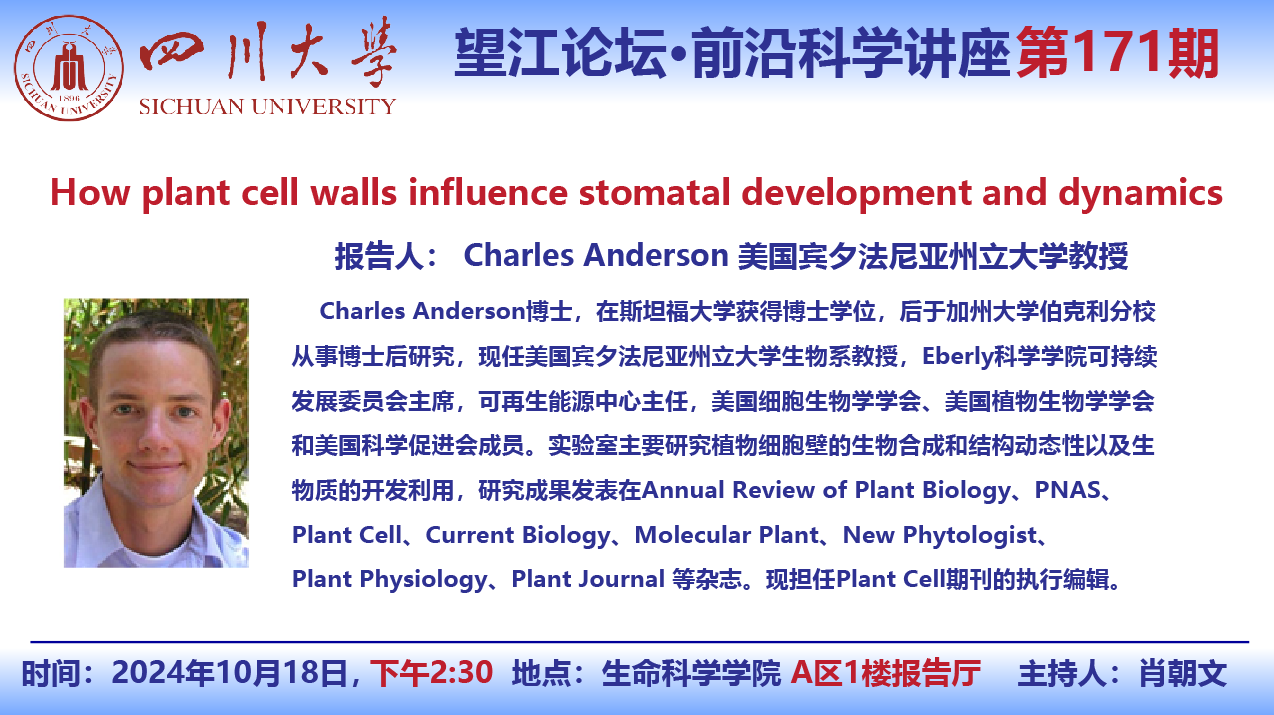 望江论坛-前沿科学讲座(第171期):Charles Anderson教授10月18日学术讲座