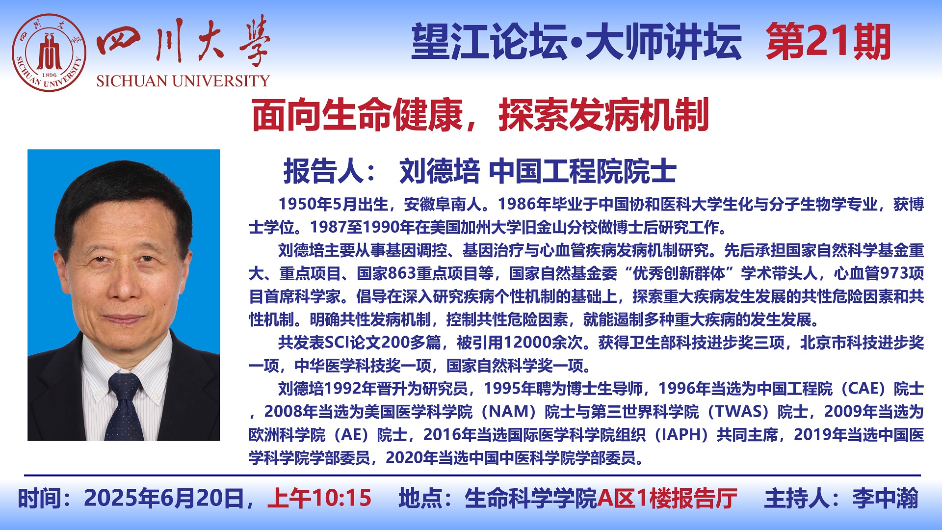 望江论坛-大师讲坛(第21期):刘德培院士6月20日学术讲座