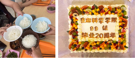 99级校友们精心策划和准备了本次返校值年活动,到食堂重温了读书时的感受、再次仰望第一理科楼前的毛主席像、如当年一般漫步在荷花池畔,20年后重归校园,青春的意义再次被唤醒。在座谈环节,未能到场的同学与老师录制了祝福视频,旧照片的辨识唤醒了大家快乐的记忆。抽奖环节让给大家带来了别样的惊喜,一份精心准备的蛋糕,更是唤起了同学们之间长久的关怀和情谊。学校校友总会准备的伴手礼,让大家再次感受到了母校细致的关怀和柔情。